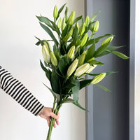 Pro Tip: Cut the stems before you put them in water please and keep them in a cool room. Please make sure the vase is tall enough! As the lily buds open, pull off the stamens (the brown dangly things) as soon as it's possible to do so - we like to use tissues to grab onto them. If you wait too long the pollen appears on the stamens and will leave a turmeric-like stain on the petals..and everything else!