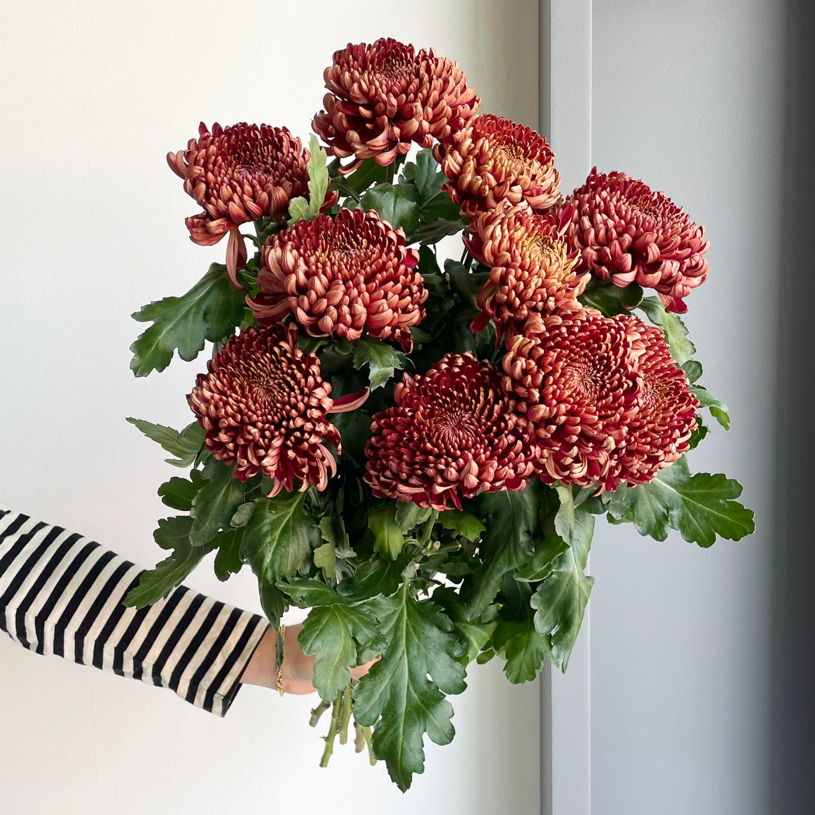 A bunch of 10 chrysanthemums, kind of an old fashioned flower - but these varieties are the next best thing to dahlias and but have nearly double the vase life!