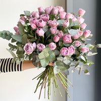 A luscious bouquet full of our fabulous spray roses that's amazing once bloomed paired fragrant eucalyptus cinerea!