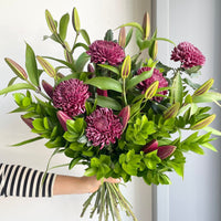 Rich, bold, and filled with sophistication—Havana combines deep purple chrysanthemums with elegant lilies and fresh green foliage. This stunning bouquet is the perfect balance of vibrant color and refined beauty, creating an arrangement that is both striking and calming.