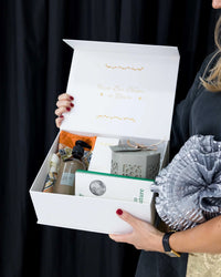 We have curated our gift box collections using only our most beloved and best selling products (tried and true), nestled them within our luxe tissue paper and popped them in a beautiful bespoke gold foiled box tied with grosgrain ribbon and sealed with a note from you, on our stunning custom gift card.