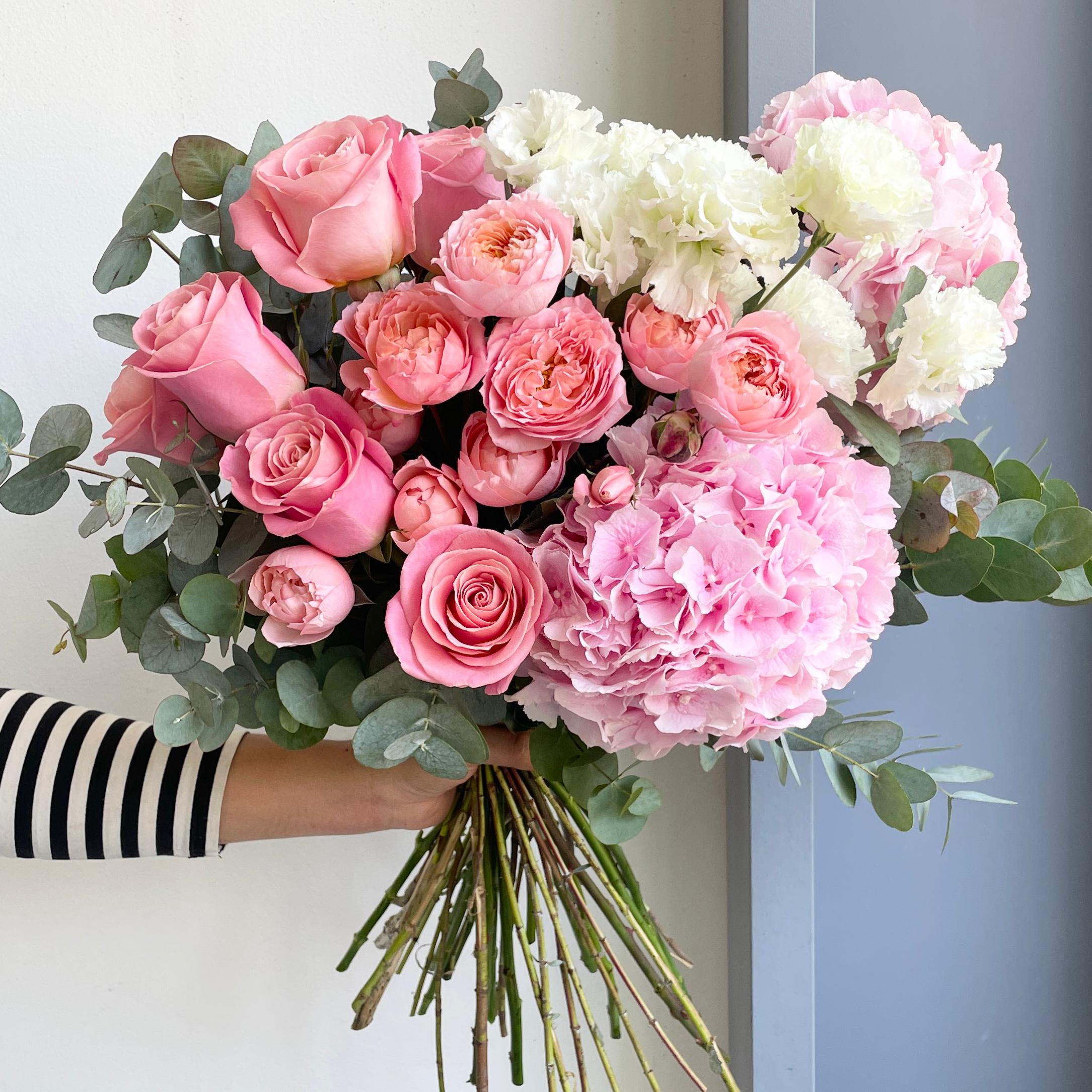 Packed with pink roses, julietta spray rose, and that fluffy cotton-candy hydrangea, this bouquet is basically a love letter in flower form. Romantic? Absolutely. Adorable? Always. Over-the-top? Just the right amount.