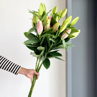 Comes in bunches of 5 stems that are approximately 95cm tall - these are big and gorgeous examples of an oriental lily
