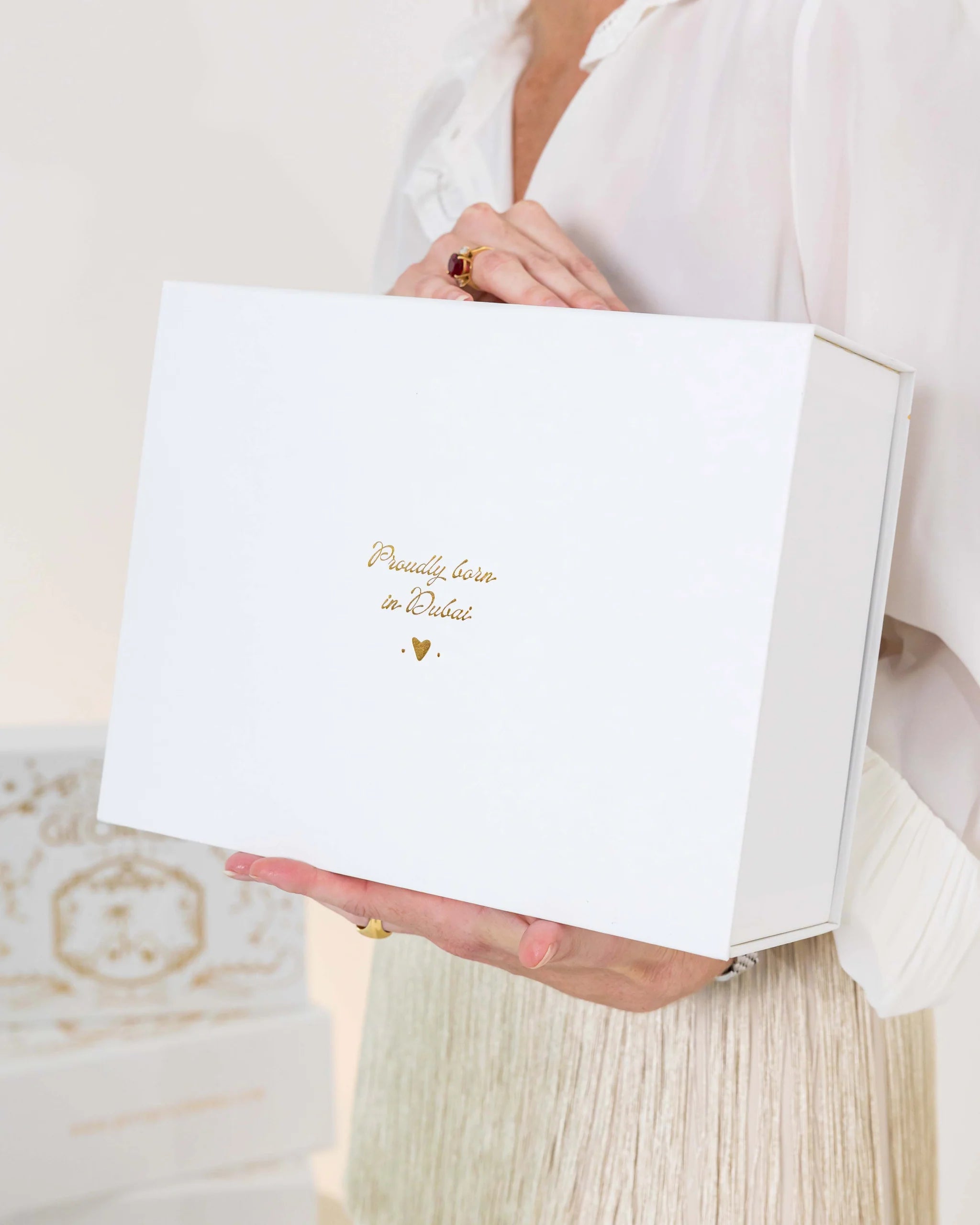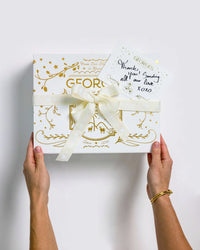 We have curated our gift box collections using only our most beloved and best selling products (tried and true), nestled them within our luxe tissue paper and popped them in a beautiful bespoke gold foiled box tied with grosgrain ribbon and sealed with a note from you, on our stunning custom gift card.
