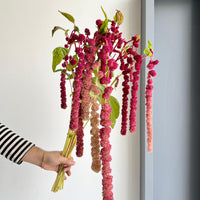 Amaranthus is a stunning and dramatic flower, loved for its cascading beauty — but it is naturally delicate. While the blooms themselves can last well in a vase, the leaves tend to wilt and dry out much faster, sometimes within just a few days.