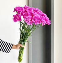 A lovely color, these carnations last ages. Carnations Farida Lavender Select are long stemmed, but they will also look nice in short bud vases.
